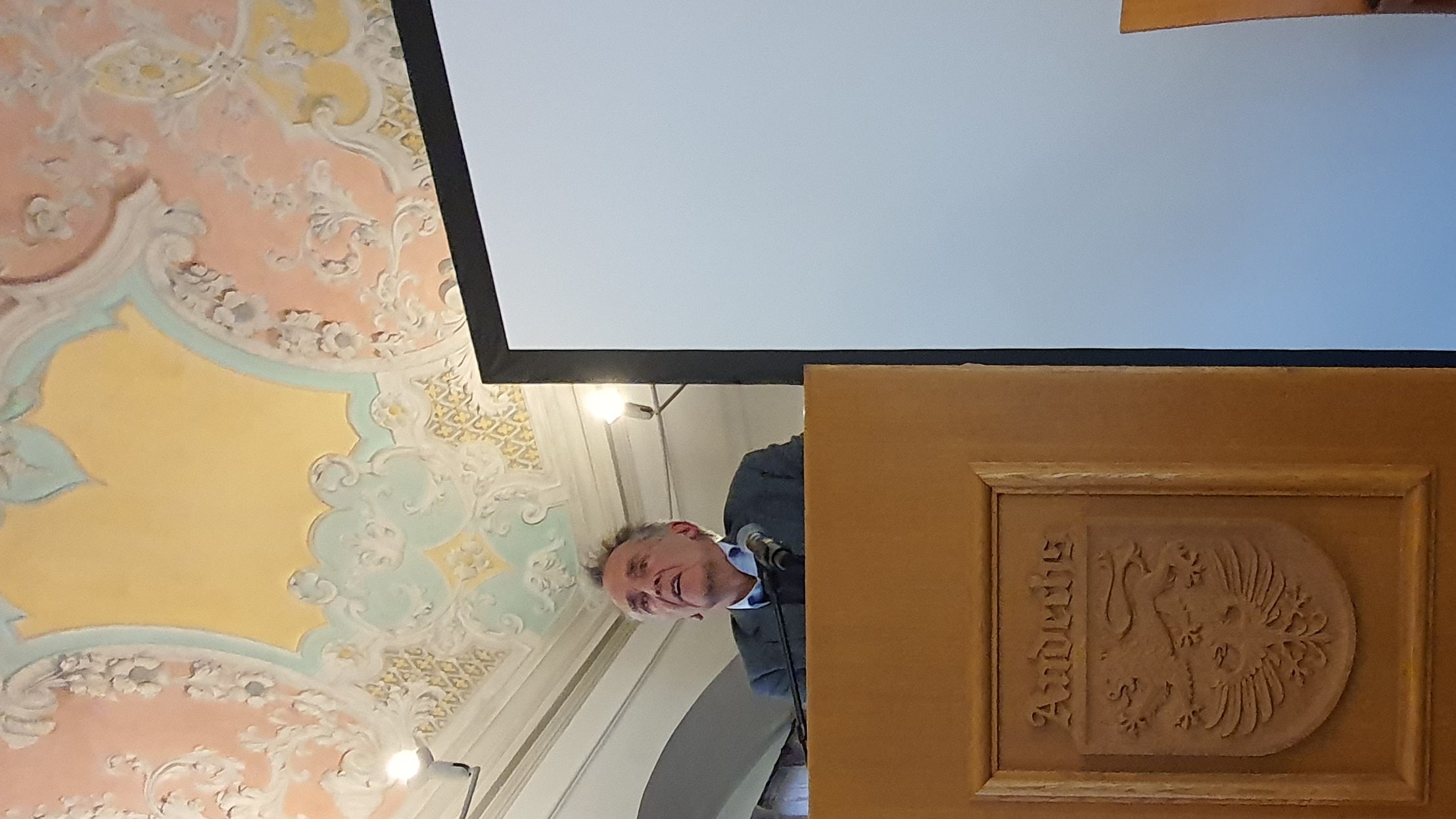 20230204_135114 Professor Michael von Schulenberg bei seinem Vortrag – Foto von: Makroskop – Hans-Peter Roll
