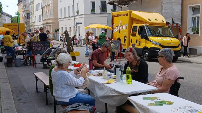 Das „Gute Leben“ kam jetzt auch ins Westend. Die Nachbarschaft traf sich zum gemeinsam Brotzeitmachen, zum Austausch über das Viertel, lokale Initiativen stellten sich vor. Alles recht locker – ohne festes Programm, aber mit viel Zeit und Raum zum Kennenlernen und zum Gedankenaustausch.