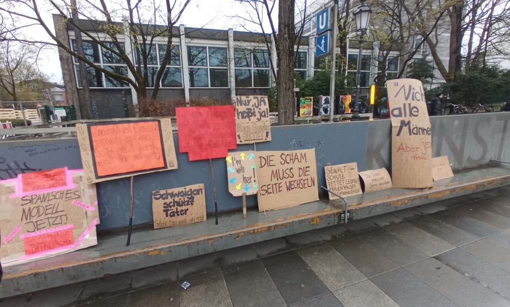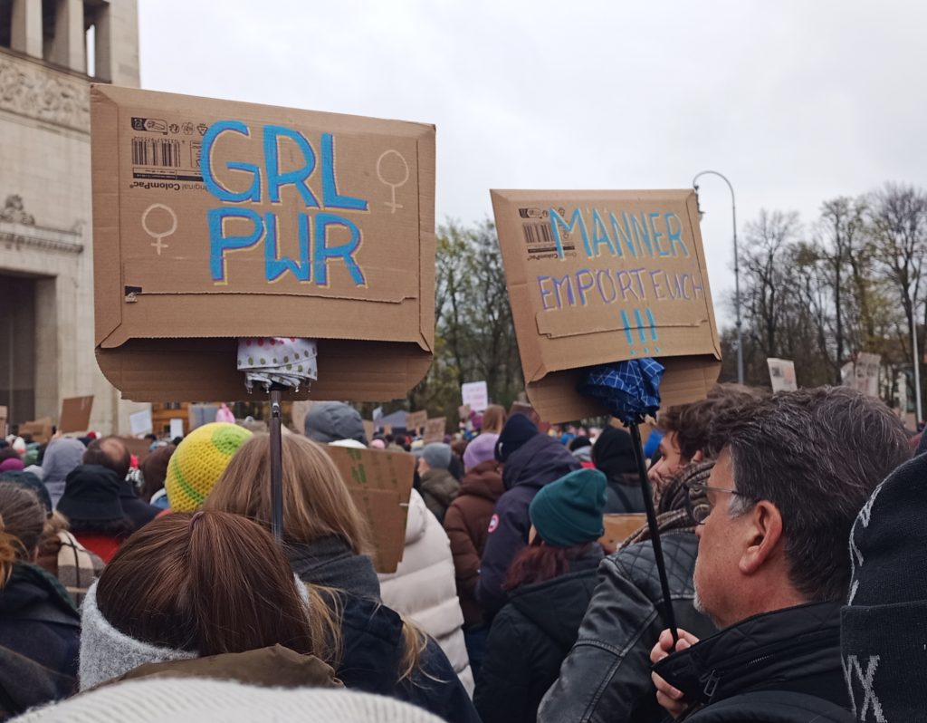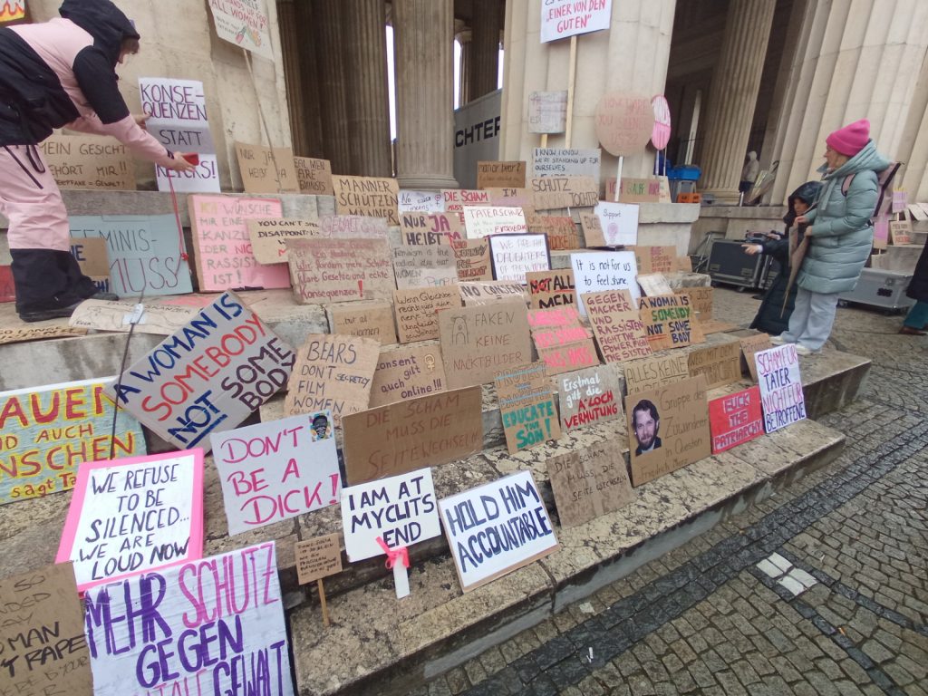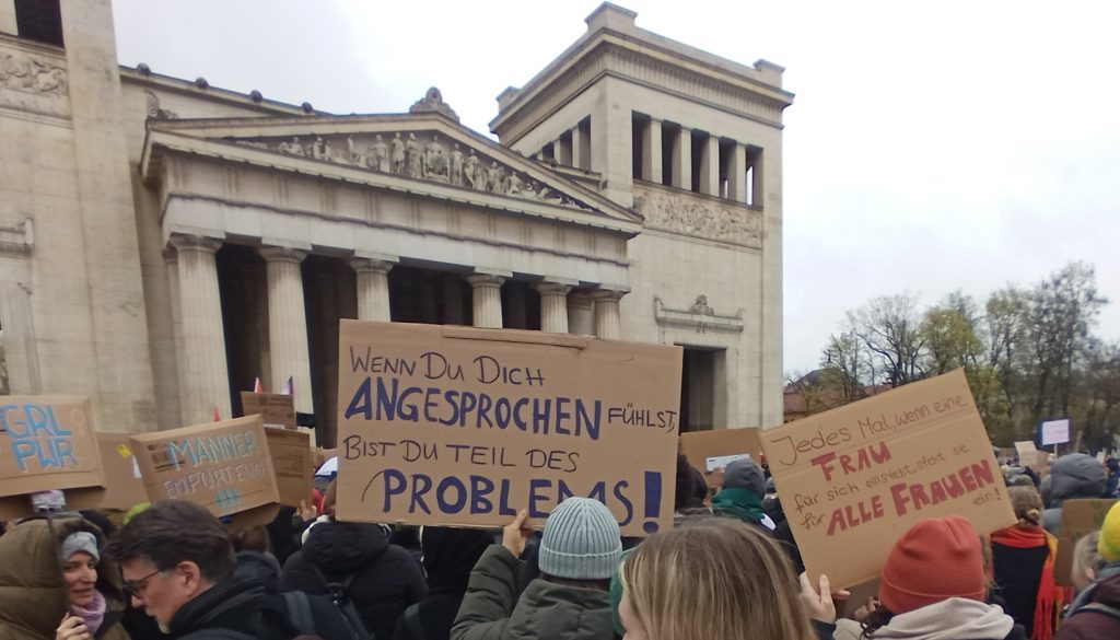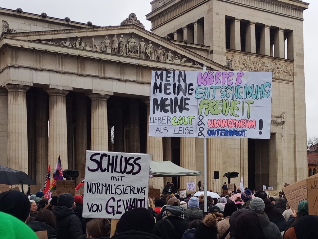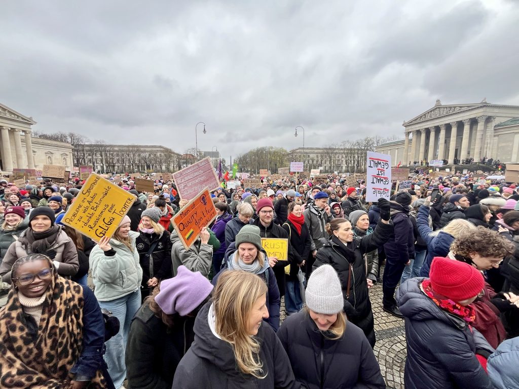 Am Sonntag, den 29. März fand in München eine Kundgebung gegen sexualisierte digitale Gewalt an Frauen statt. Aktueller Anlass ist der Fall der Schauspielerin und Moderatorin Collien Fernandes. Fernandes wirft ihrem Ex-Partner vor, unter ihrem Namen Fake-Accounts bei (a)sozialen Medien betrieben und pornografische Videos und Bilder an Männer verschickt zu haben. 6.000 Menschen bekundeten ihre Solidarität mit Collien Fernandes und allen weniger prominenten betroffenen Frauen. Und das im spätwinterlichen, nassen Wetter auf dem Königsplatz.