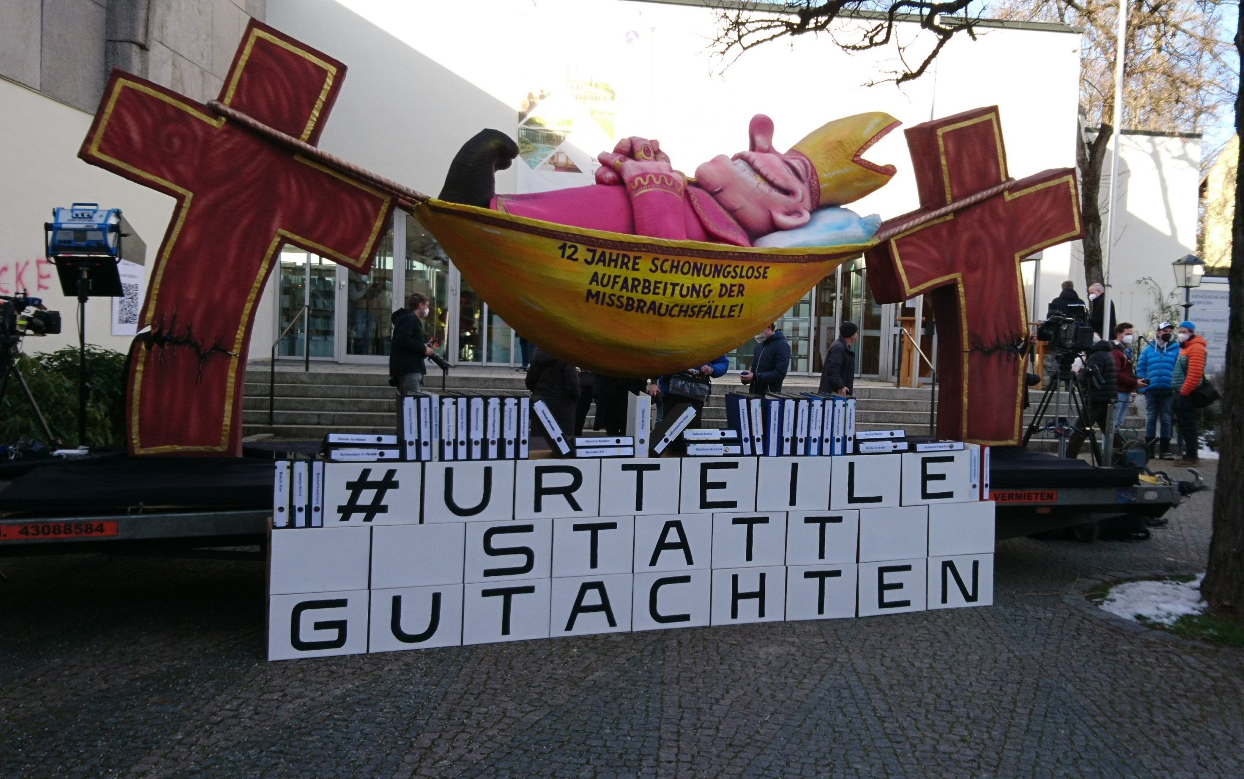 DSC_0994-cut „Hängemattenbischof“ von Jacques Tilly vor der Katholischen Akademie – Foto: Nick Bergner