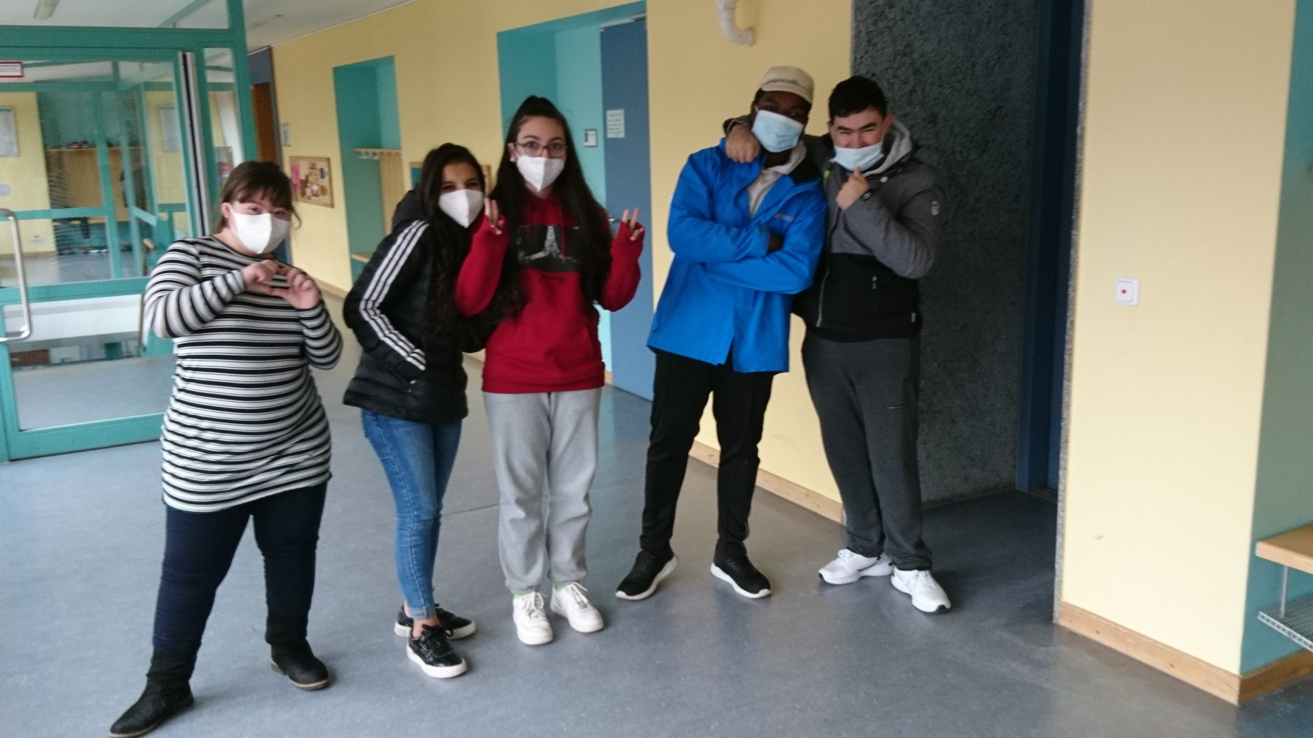 Radiogruppe Mathilde-Eller-Schule Fünf Schüler*innen der siebenköpfigen Radiogruppe der Mathilde-Eller-Schule – Foto: Nick Bergner